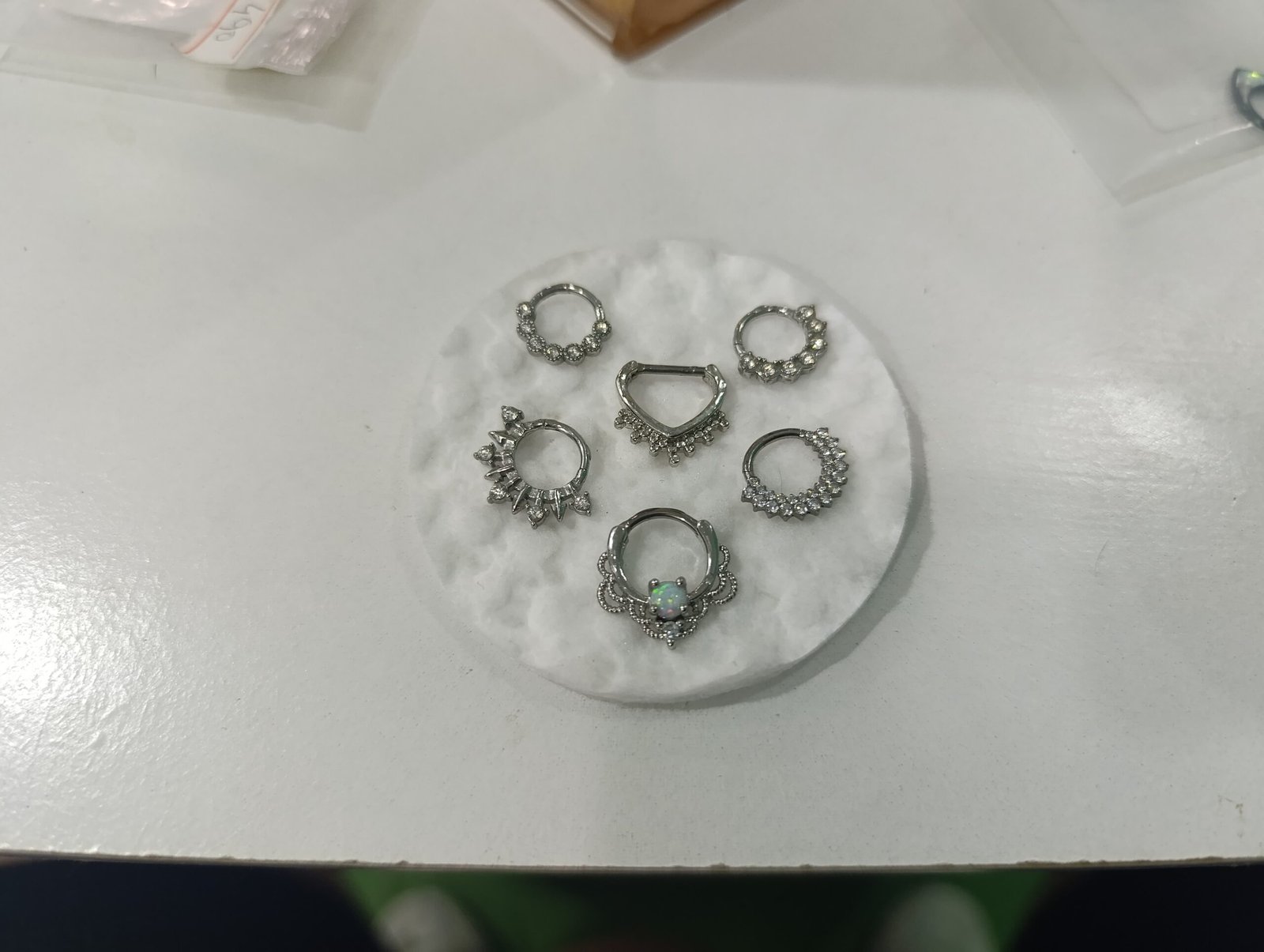 septum glory CategoríasNEW ALQUIMIA Bananas/cejas,/rock Microdermales Ombligo/Navel Acero quirúrgico Titanio Oreja 👂 Ácero quirúrgico Titanio Nariz Nostril Ácero quirúrgico Titanio Septum Ácero quirúrgico Boca 👄 Labios/Lips😗 Lengua/Tongue Genitales 🔞 General septum glory$790 1 disponibles Comprar ahora Categorías: Ácero quirúrgico, General, Septum Descripción Descripción septum acero quirúrgico, con un ópalo blanco incrustado . 1.2x10mm Productos relacionados ¡Oferta! Nipples María $1.199 El precio original era: $1.199.$799El precio actual es: $799. Añadir al carrito Labrets mariposa dorada $249 Añadir al carrito Navel Nairobi $2.390 Añadir al carrito Navel coco $490 Añadir al carrito